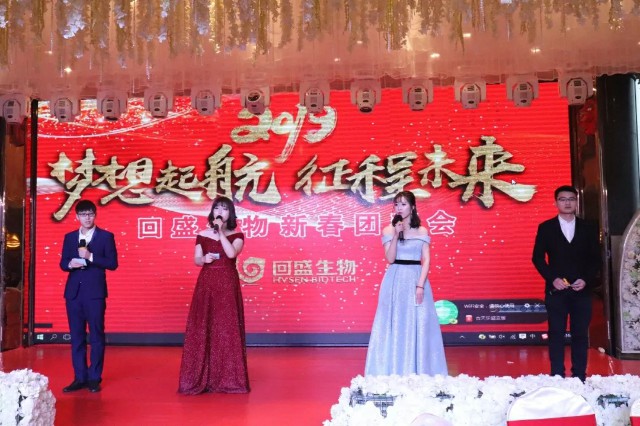 2018年以“夢想起航 征程未來”為主題的回盛生物新春團(tuán)拜會在大自然皇家宴酒店舉行。員工自發(fā)編排的舞蹈、小品、相聲等節(jié)目贏得員工們的陣陣掌聲,現(xiàn)場氣氛活躍,笑聲不斷,精彩紛呈。