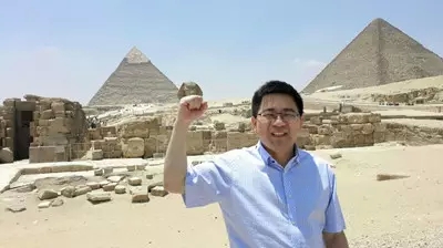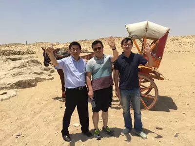 5月31日,陽光明媚,天空如洗。我們一行五人來到位于埃及開羅西南邊的金字塔。還沒下車,就見到一架架中世紀(jì)風(fēng)格的馬車混入現(xiàn)代氣息的車流和人流中,嗒嗒滴飛馳穿梭;一陣陣馬屬動物的味道夾雜在燥熱的空氣中,不適的同時也給人一種自然而真實的歷史感。