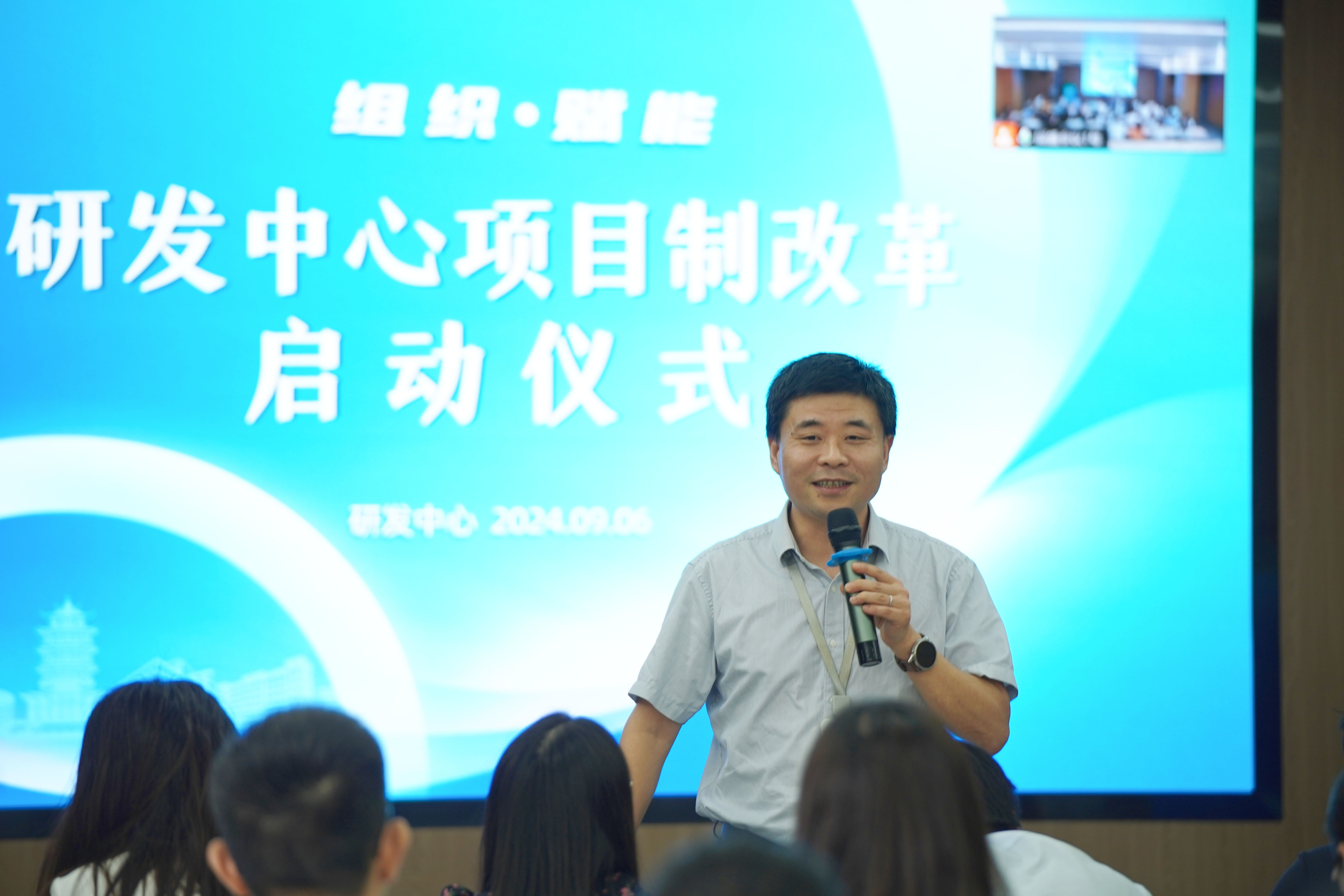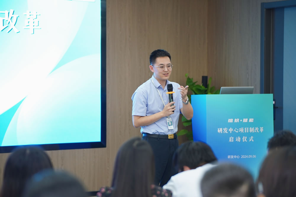 隨后,科研管理部總監(jiān)李曹為大家詳細(xì)介紹了本次改革施行方案,從整體架構(gòu)的變化到全新的分配機(jī)制、以及項(xiàng)目制對(duì)應(yīng)的責(zé)權(quán)劃分都展開了細(xì)致的講解。